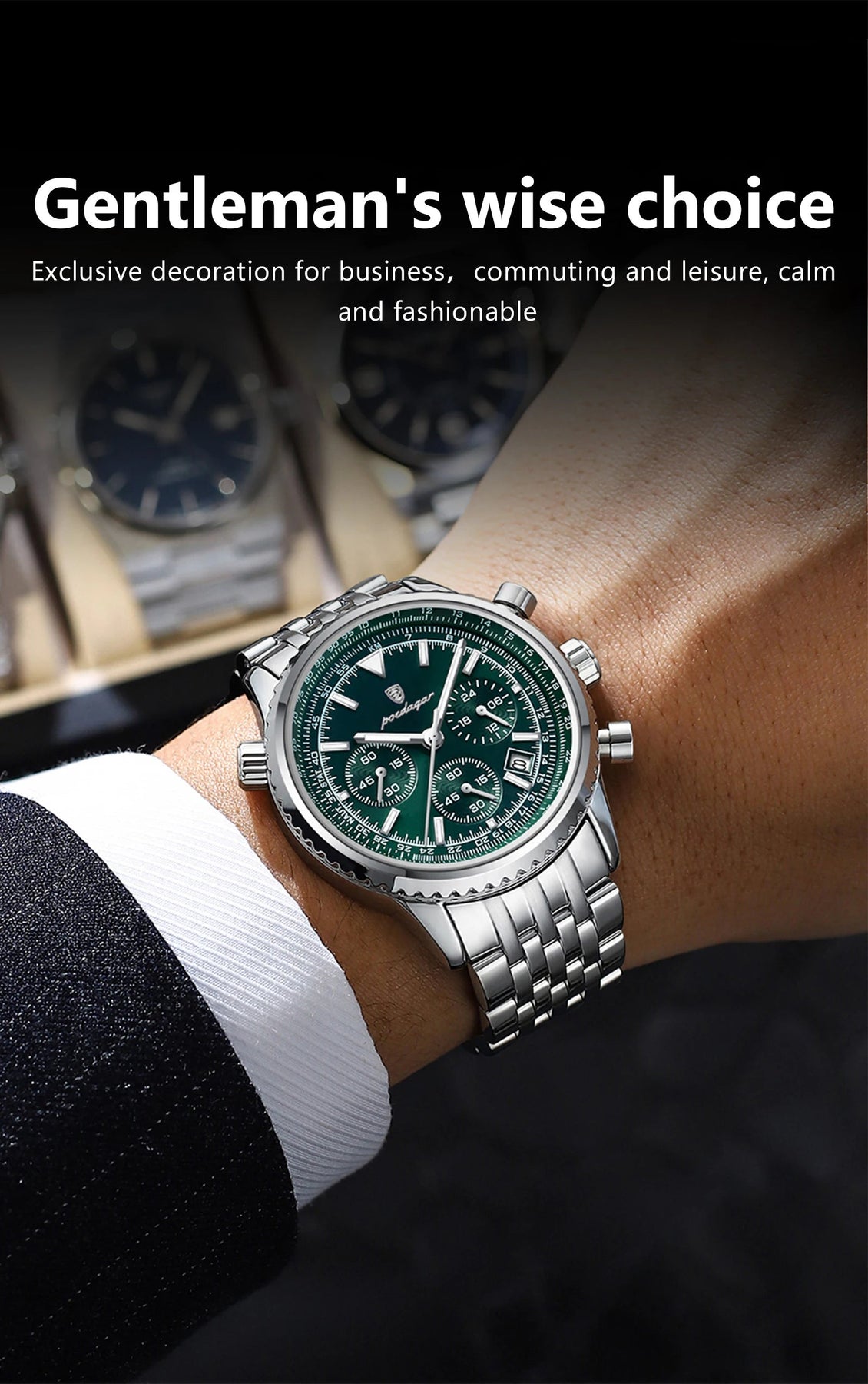 Each timepiece is carefully crafted to complement your presence whether in a boardroom, at an evening event, or in everyday moments of success. Clean design, premium materials, and reliable movement come together to create a watch that speaks quietly, yet powerfully.
